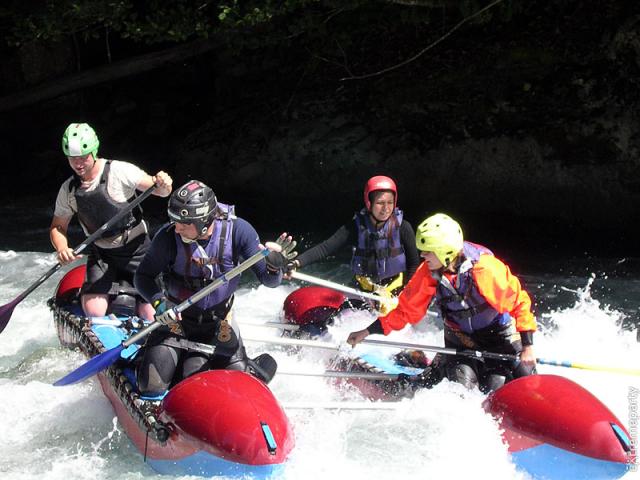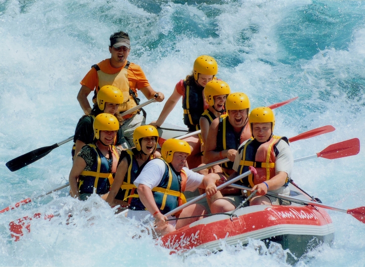 Рафтинг — групповой сплав по горной реке. Рафт — вид судна, предназначенный для сплава по горным рекам. Классический рафт - это надувная лодка, соотношение длины к ширине у которой составляет 2:1. Диаметр борта — 50-60 см. Полный объем надувных элементов рафта составляет 2,5 — 3 куб. м. Вместимость рафта от 4 до 18 человек. Для любителей острых ощущений. Чтобы испытать себя, не требуется специальный опыт. Перед путешествием проводится подробный инструктаж: вам расскажут о предстоящем маршруте, о пользовании инвентарем, о технике безопасности, общих правилах поведения на воде.